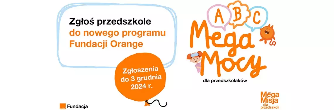 Zgłoszenia do programu przyjmowane są do 3.12.2024 r. do godz. 15.00. Placówka zainteresowana udziałem w MegaMisji dla Przedszkoli powinna wypełnić formularz zgłoszeniowy na www.fundacja.orange.pl/przedszkola oraz napisać, dlaczego chce uczestniczyć w inicjatywie. Do 9 stycznia 2025 r. niezależna komisja wybierze 100 placówek, które rozpoczną realizację programu. Zajęcia wystartują w styczniu i potrwają do końca czerwca 2025 r.
